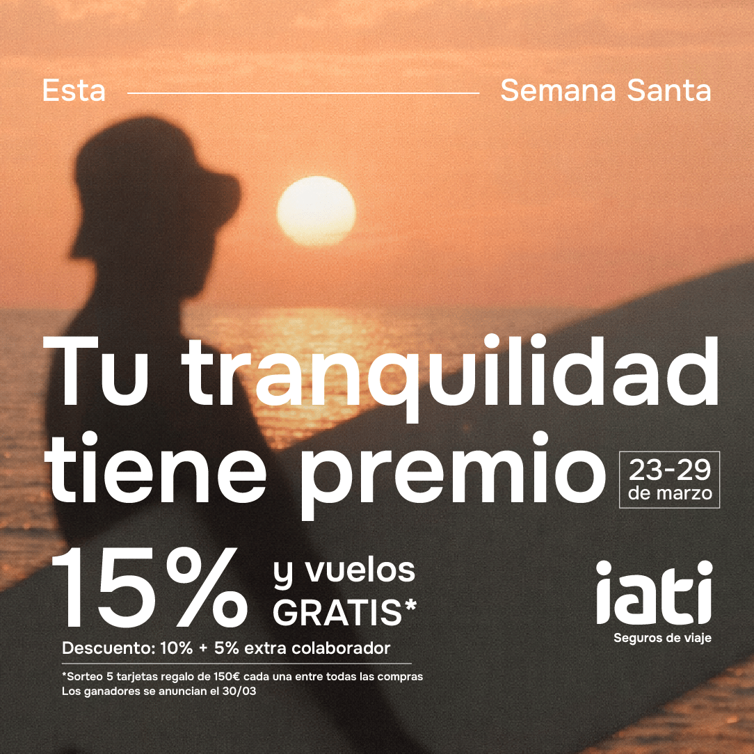 ✈️ Además, si contratas tu seguro de viaje con la promo, estarás participando en un sorteo especial de 5 tarjetas regalo en vuelos de 150€ ✈️